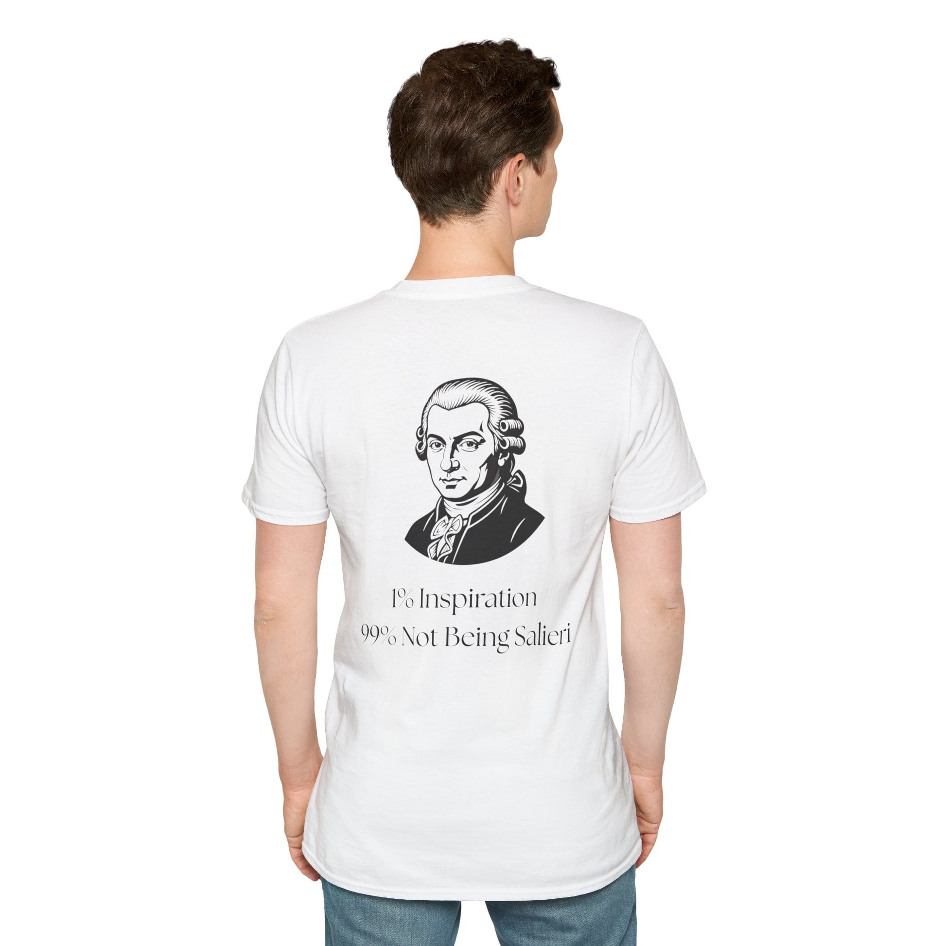 Mozart Portrait T-Shirt — 'Inspiration 99% Not Being Salieri' Funny Classical Music Tee